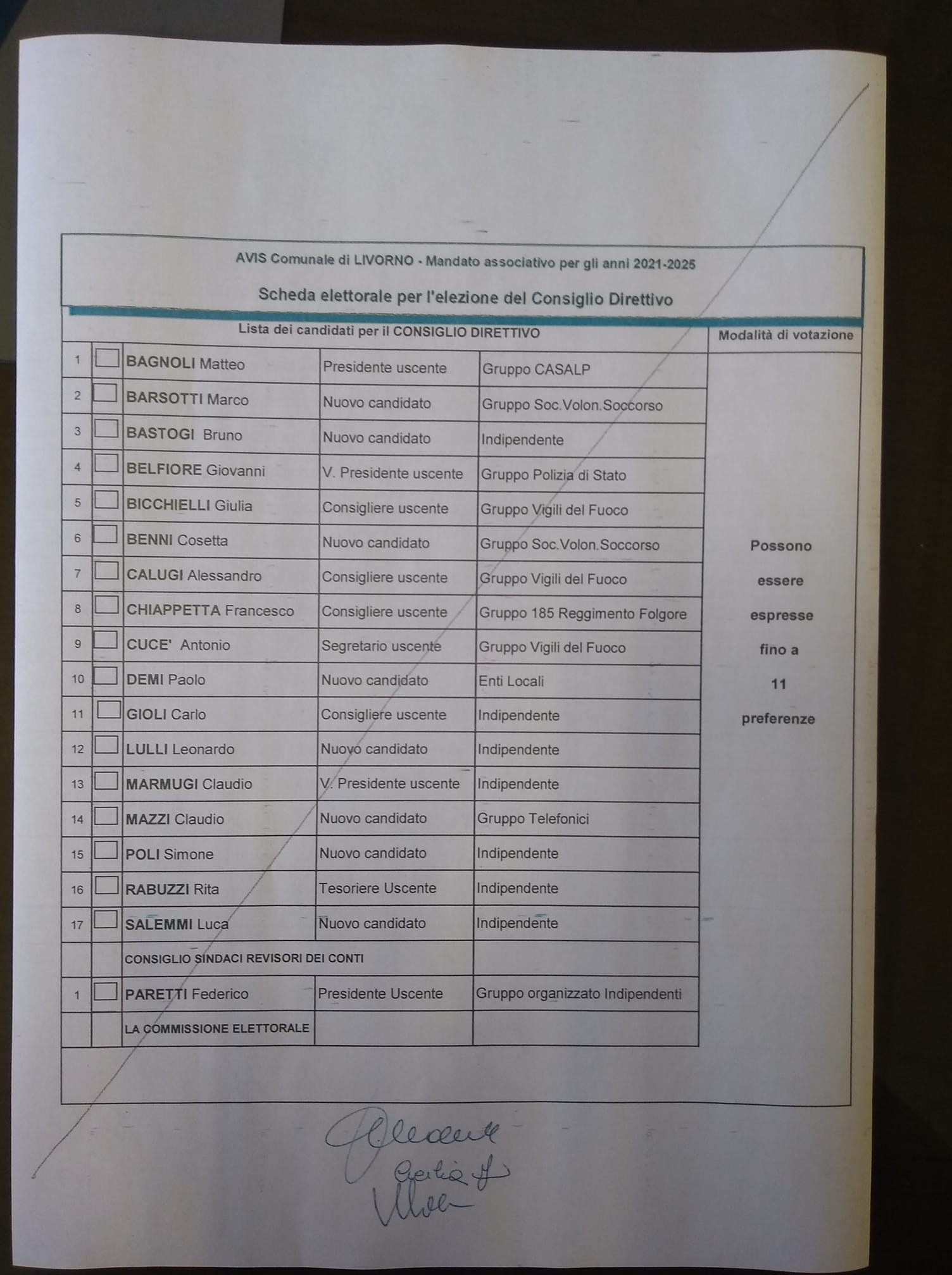 Ecco i nomi dei candidati al nuovo Consiglio Direttivo di Avis Livorno