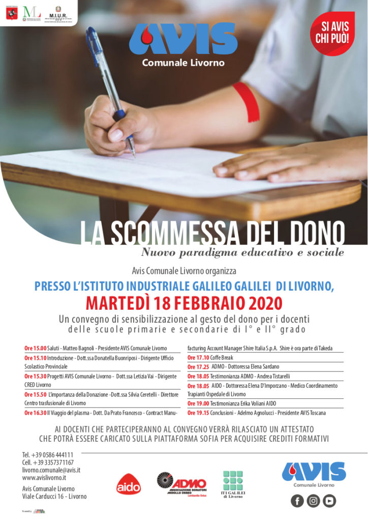 Avis Comunale Livorno organizza un corso di formazione per i docenti e per chiunque voglia conoscere l’importanza di donare sangue e plasma.